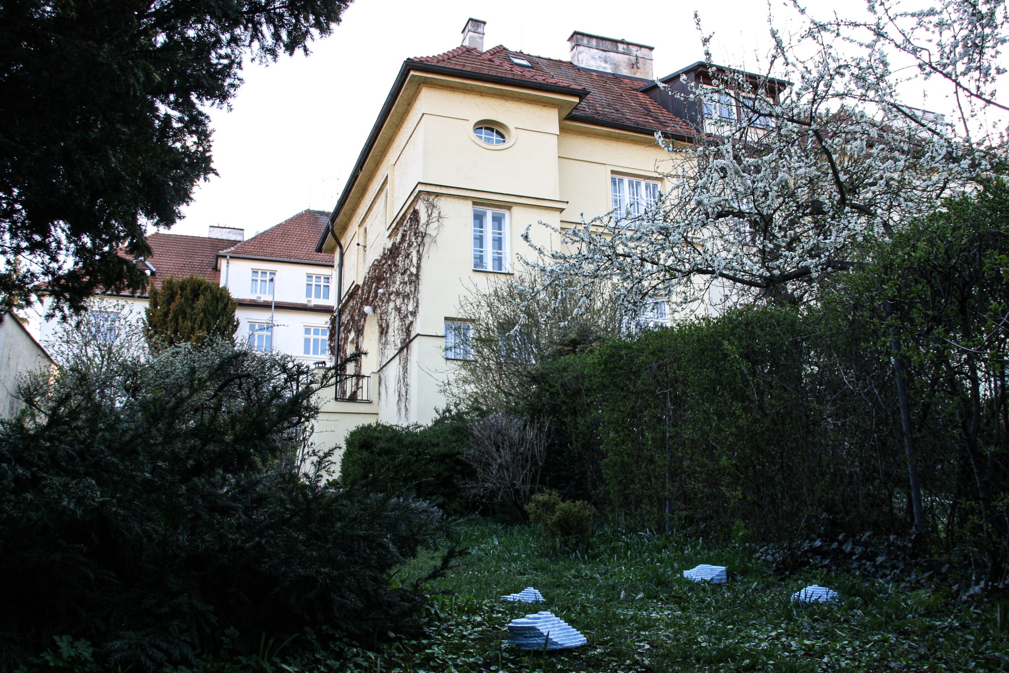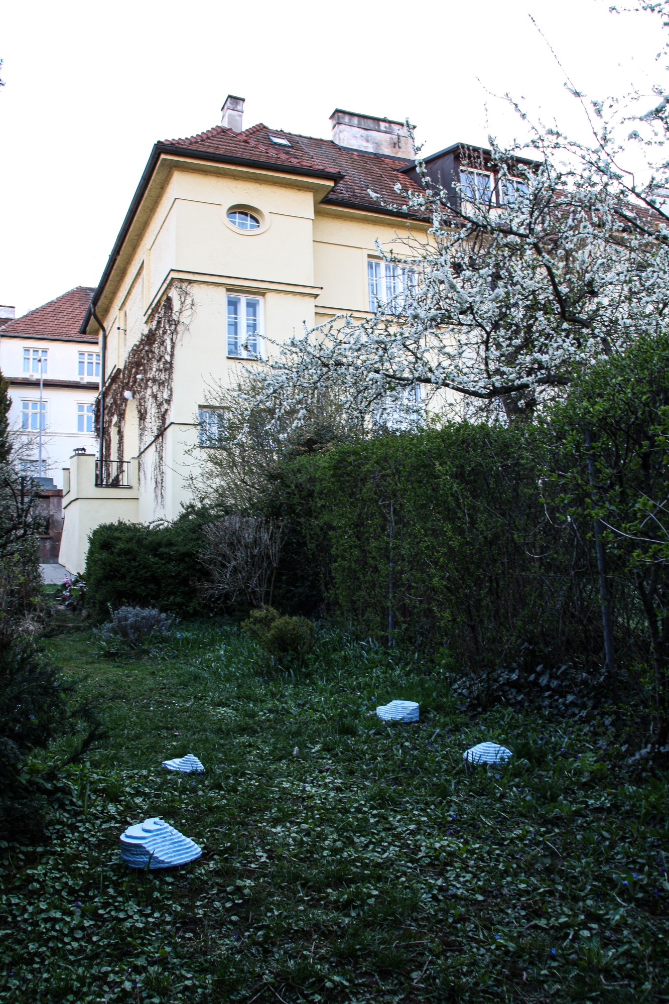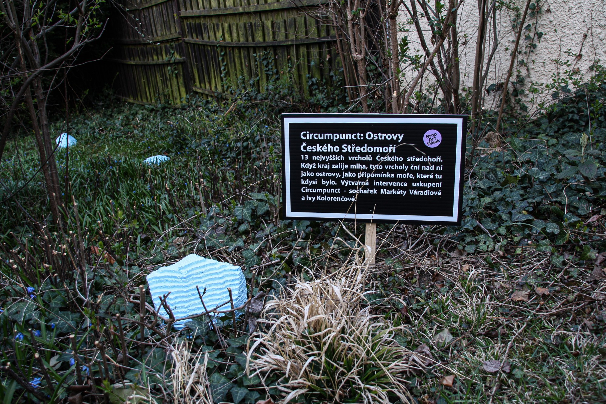 Výtvarná intervence v zahradě Mahenova památníku uskupení Cirkumpunct - sochařek Markéty Váradiové a Ivy Kolorenčové.