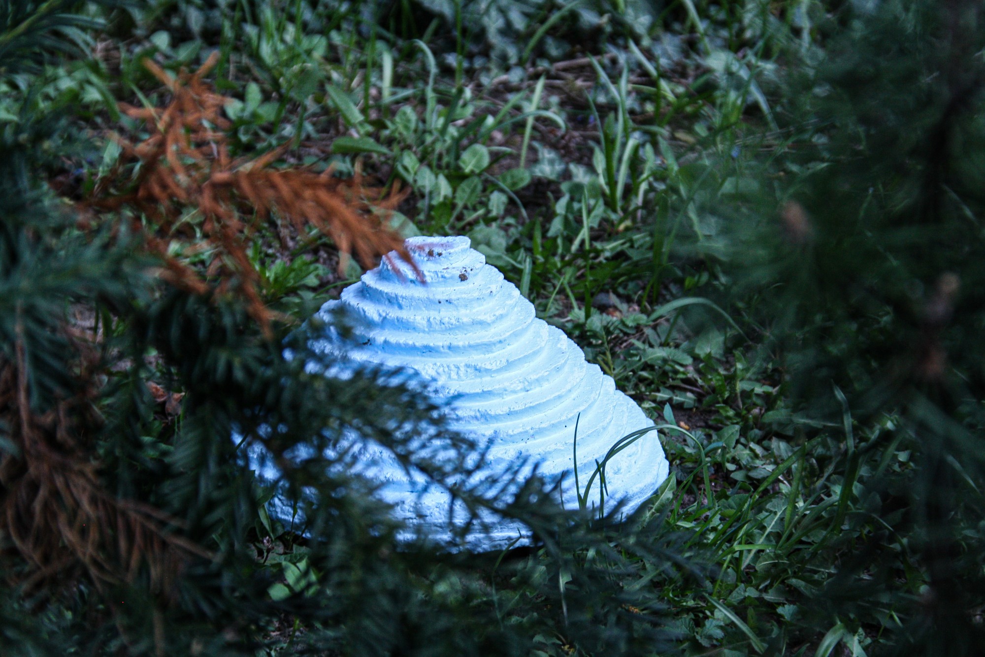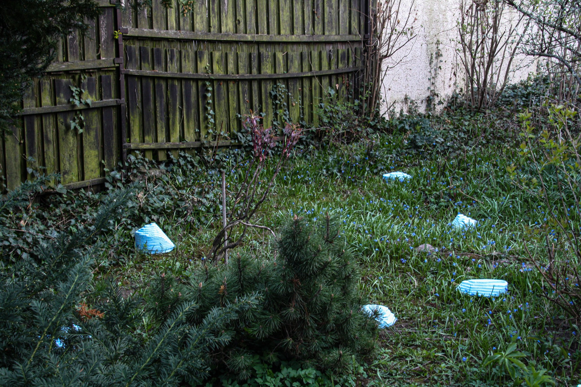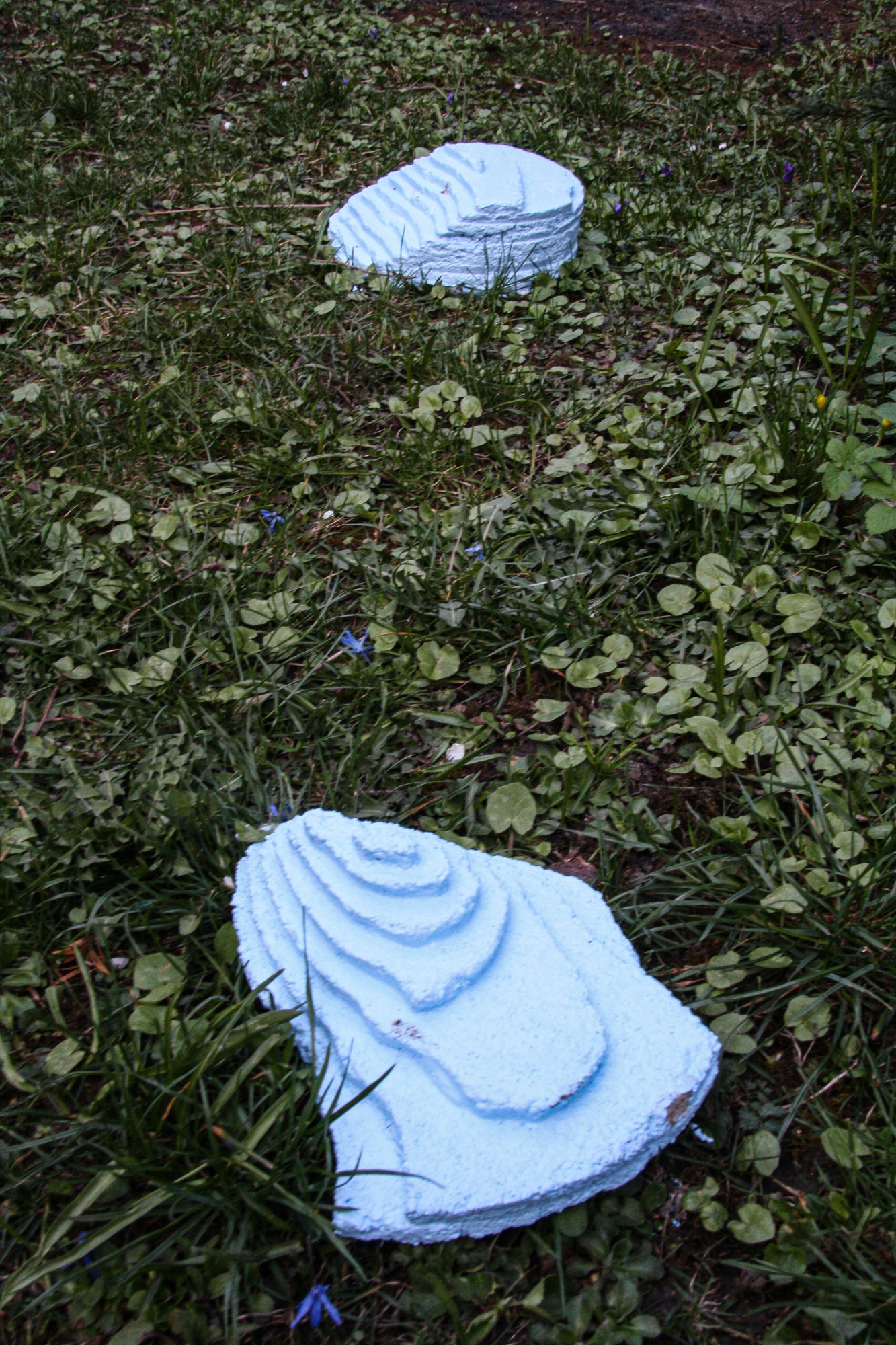 Výtvarná intervence v zahradě Mahenova památníku uskupení Cirkumpunct - sochařek Markéty Váradiové a Ivy Kolorenčové.
