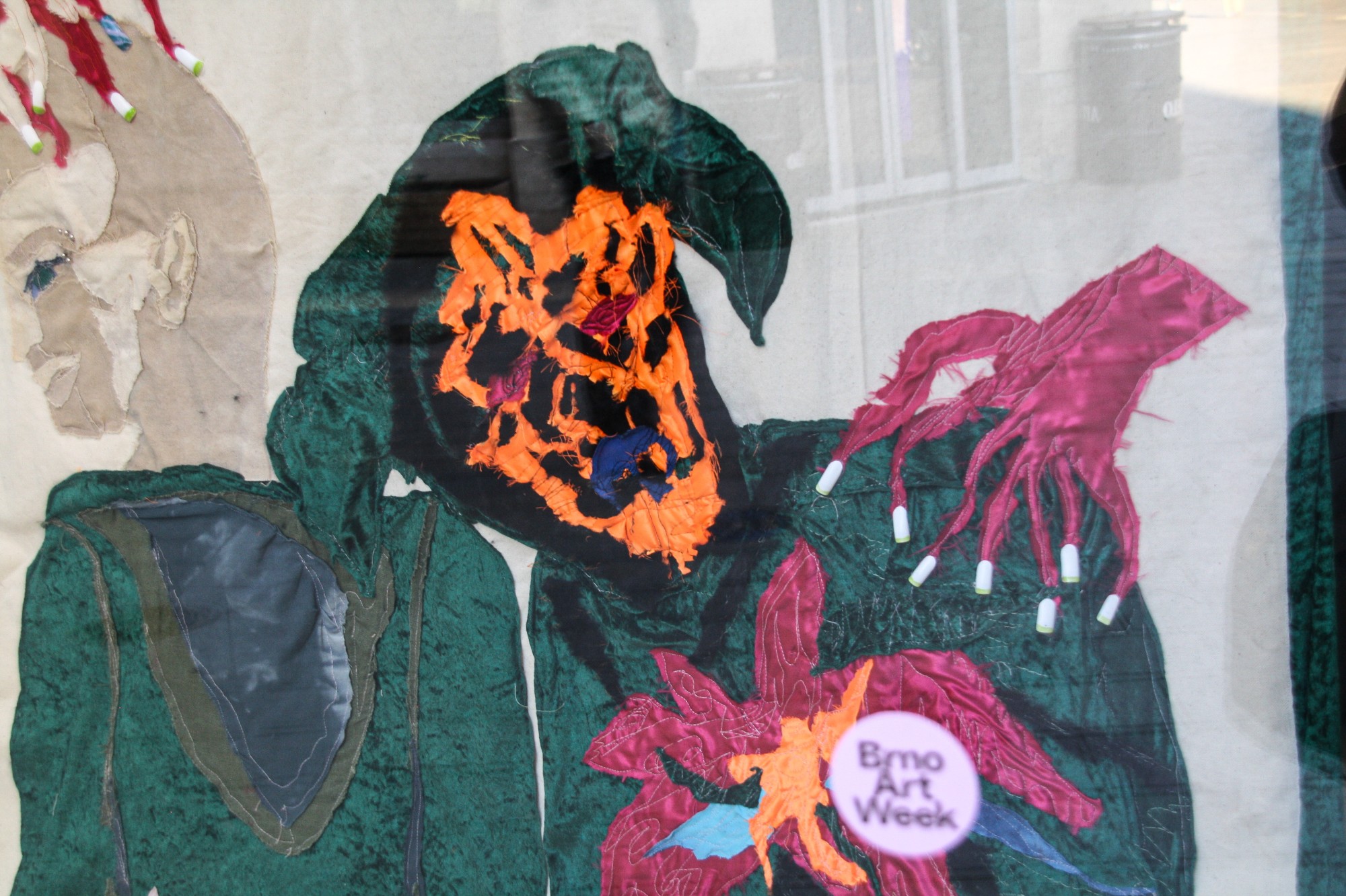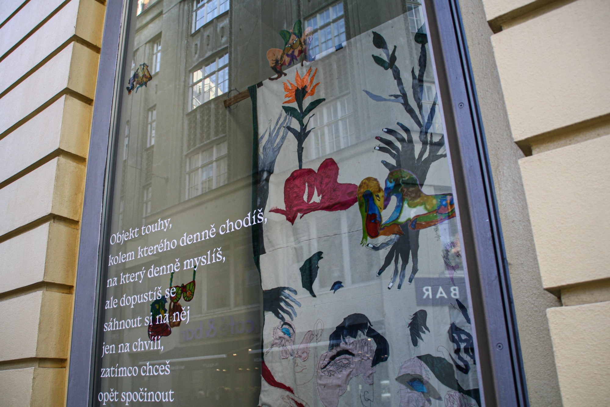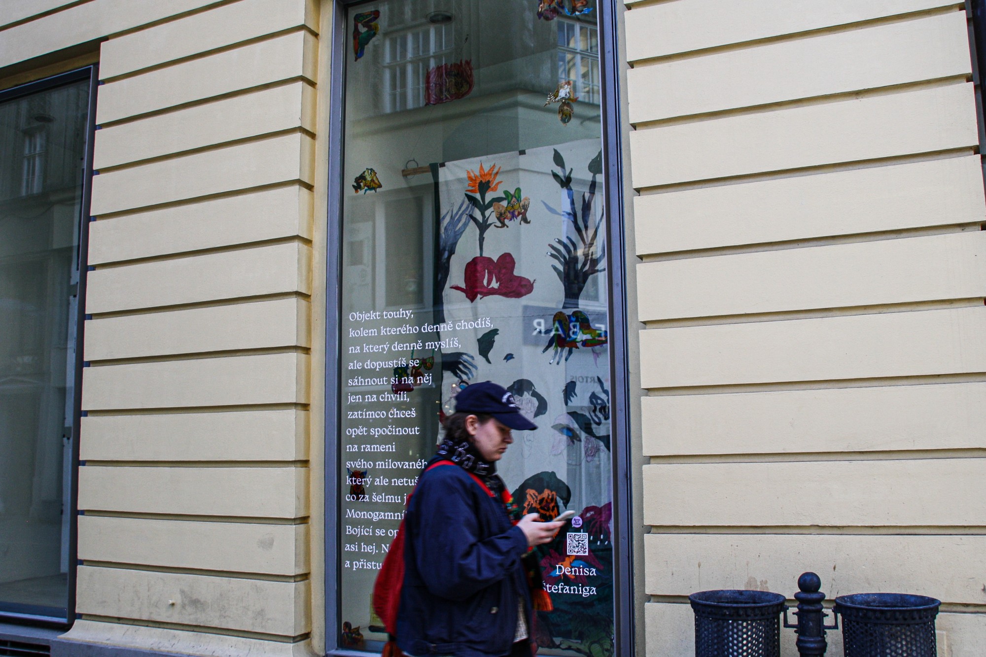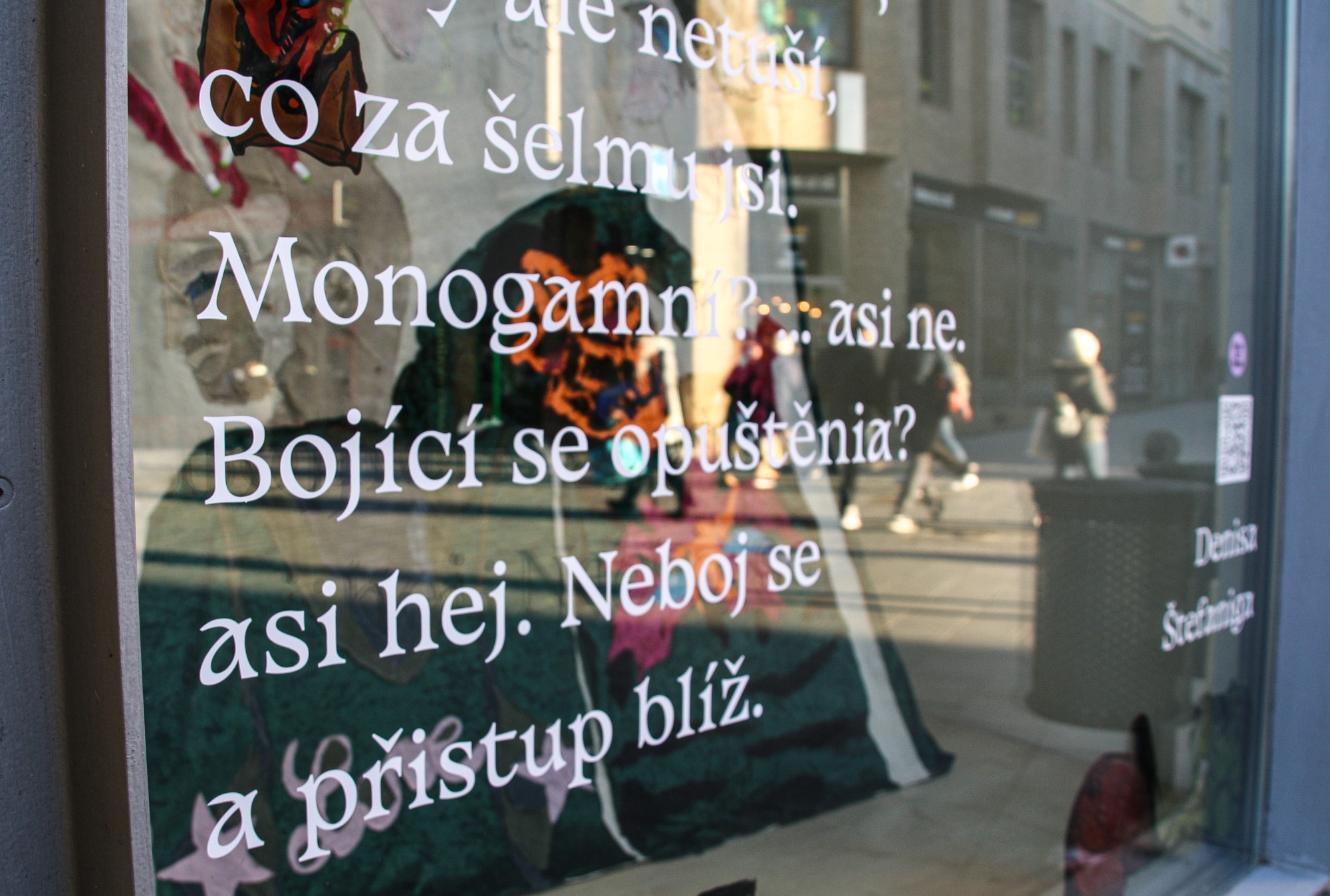 Výtvarná intervence ve výloze Ústřední knihovny Knihovny Jiřího Mahena v Brně. Vybrána z přihlášených projektů do Open Callu KJM pro intervence v rámci Brno Art Week.