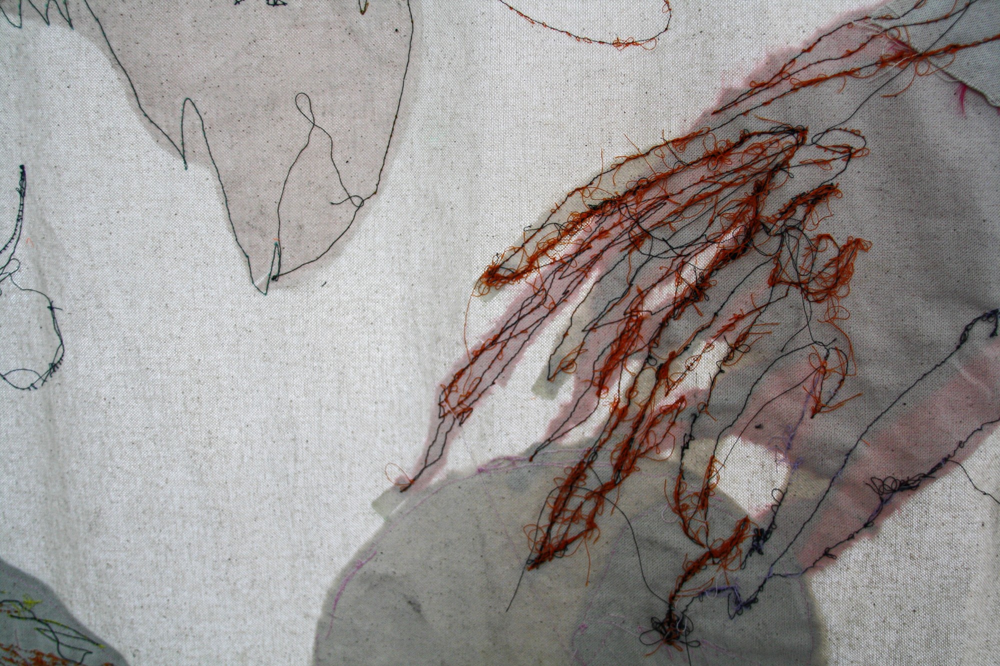 Někdy je lepší nevidět, neslyšet, jen toužit a prožívat, ale pak zavřít oči a dělat, jako by to nebylo. Ale ono to neustále někde je, roste a pučí, ta bolest, to pnutí, ta chuť, ta touha, to cokoliv, co se v nás skrývá. Stejně tak, jako se člověk snaží spět k pocitu instantního naplnění, nebo k tomu vědět a přitom zapomenout alespoň na chvíli, co se má a nemá, zatímco mu stejně neustále něco uniká, tak stejně funguje instalace ze sešitých maleb, na které je třeba dívat se přes sklo - jako lízat med přes sklenici, jako souložit přes kondom, jako zažívat něco, co je tak daleko.