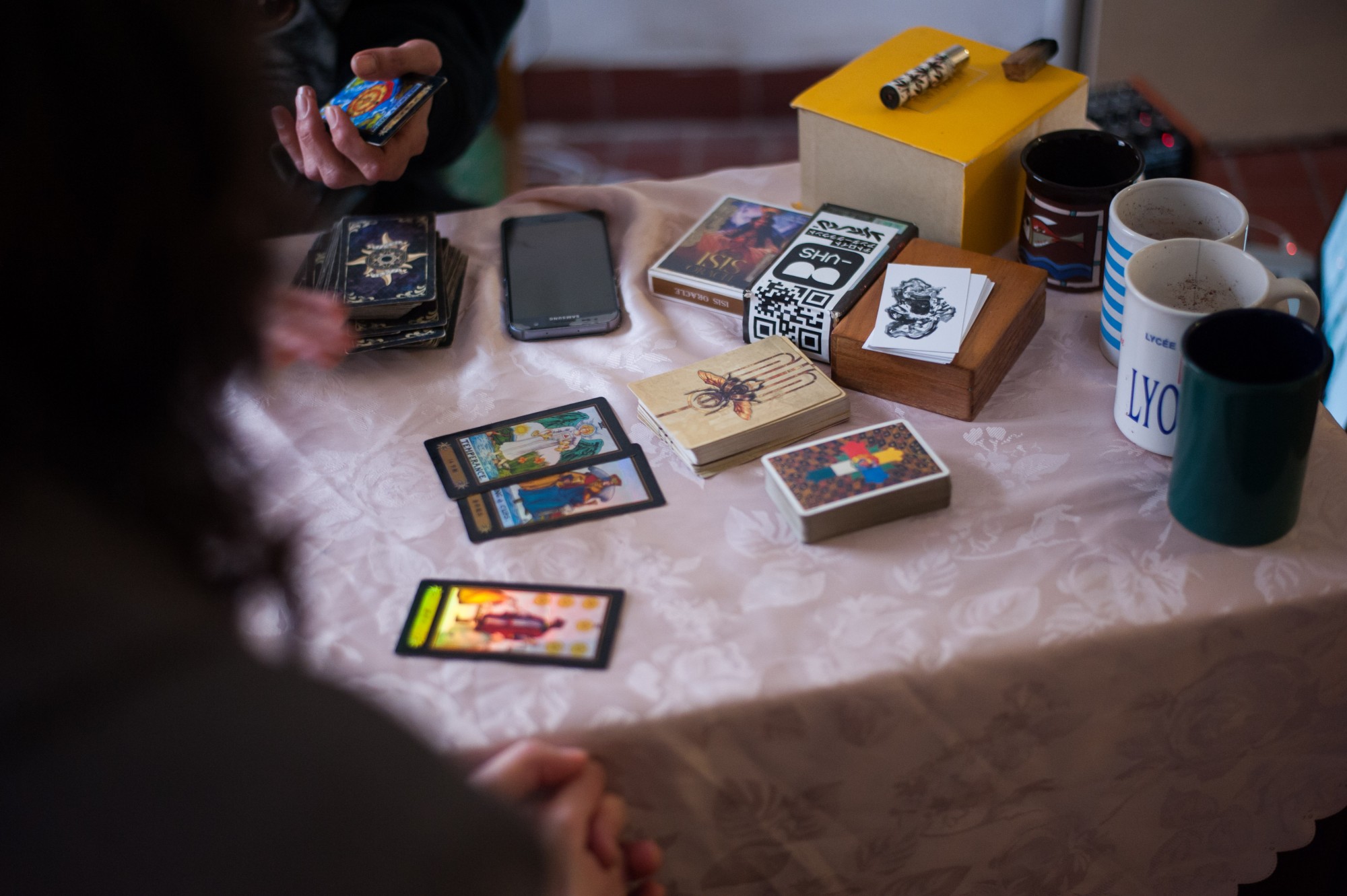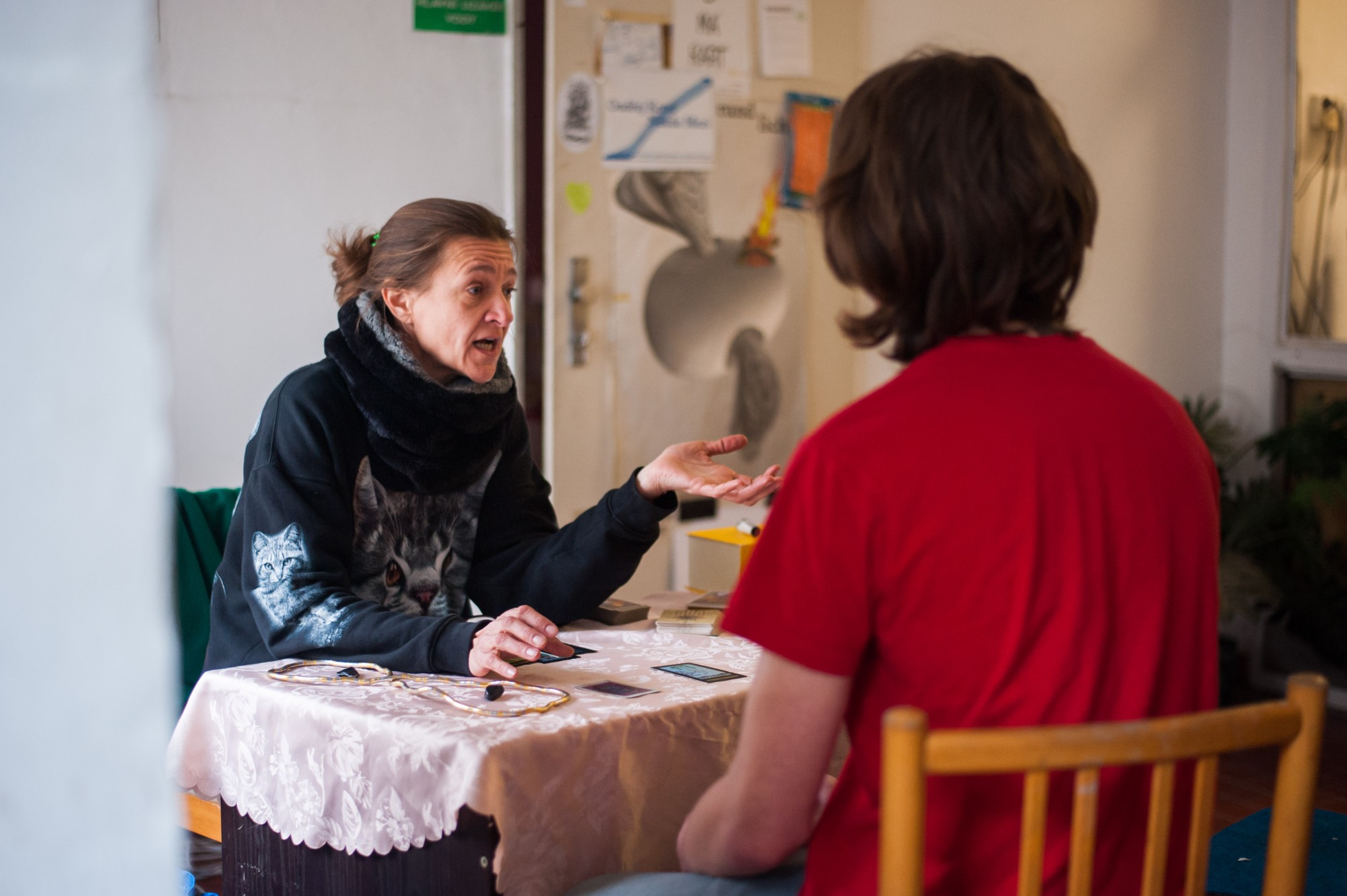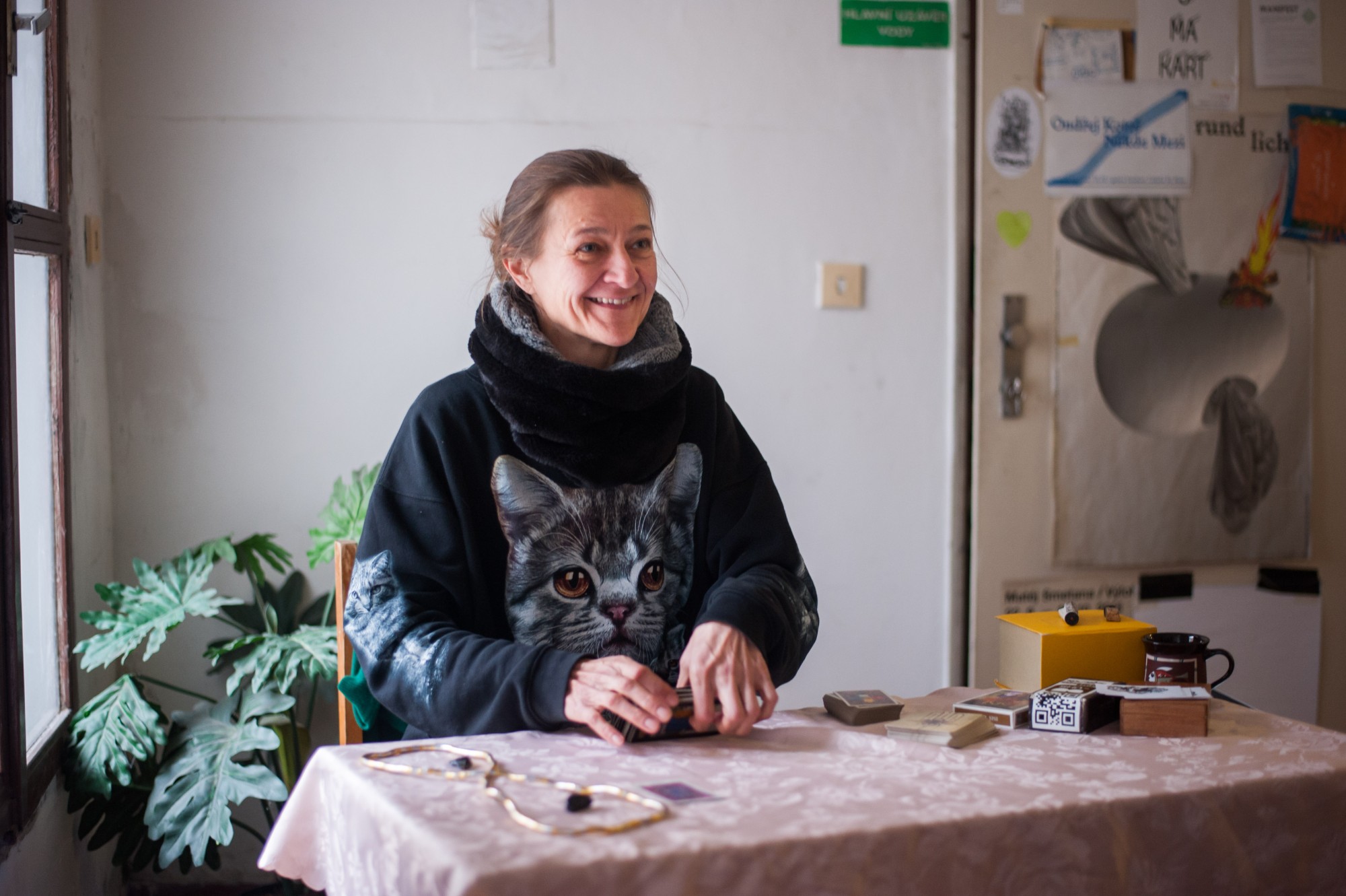 od 15:00 bude probíhat AKKATAROT - Lenka Kočišová alias Akkamiau. Umělkyně, hudebnice - techno DJ, zahraje improvizovaný experimentální set a u něj bude vykládat tarot ze tří balíčků.