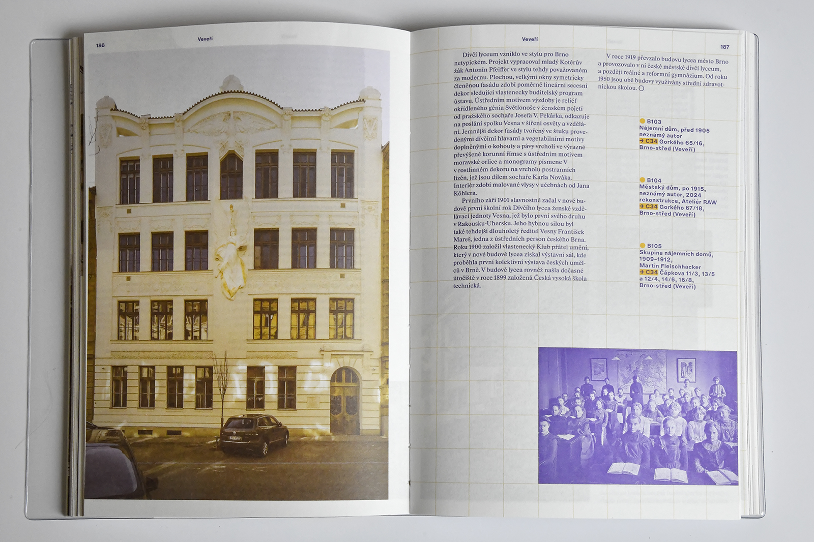Thanks to the grant support from the Ministry of Culture of the Czech Republic and the South Moravian Region, the third publication under the BAM banner has been realized as part of a long-term research plan. The volume focuses on early 20th-century architecture, highlighting Art Nouveau structures alongside buildings in historicist styles, early modernism examples, and elements of vernacular architecture typical of the era. The book features works by renowned architects such as Dušan Jurkovič, Bohumír Čermák, Franz Pawla, Ferdinand Hrach, Leopold Bauer, and Hubert Gessner, as well as lesser-known contemporaries (Maxmilian Monter, Friedrich Schmeer, and Alexander Wielmans von Monteforte).